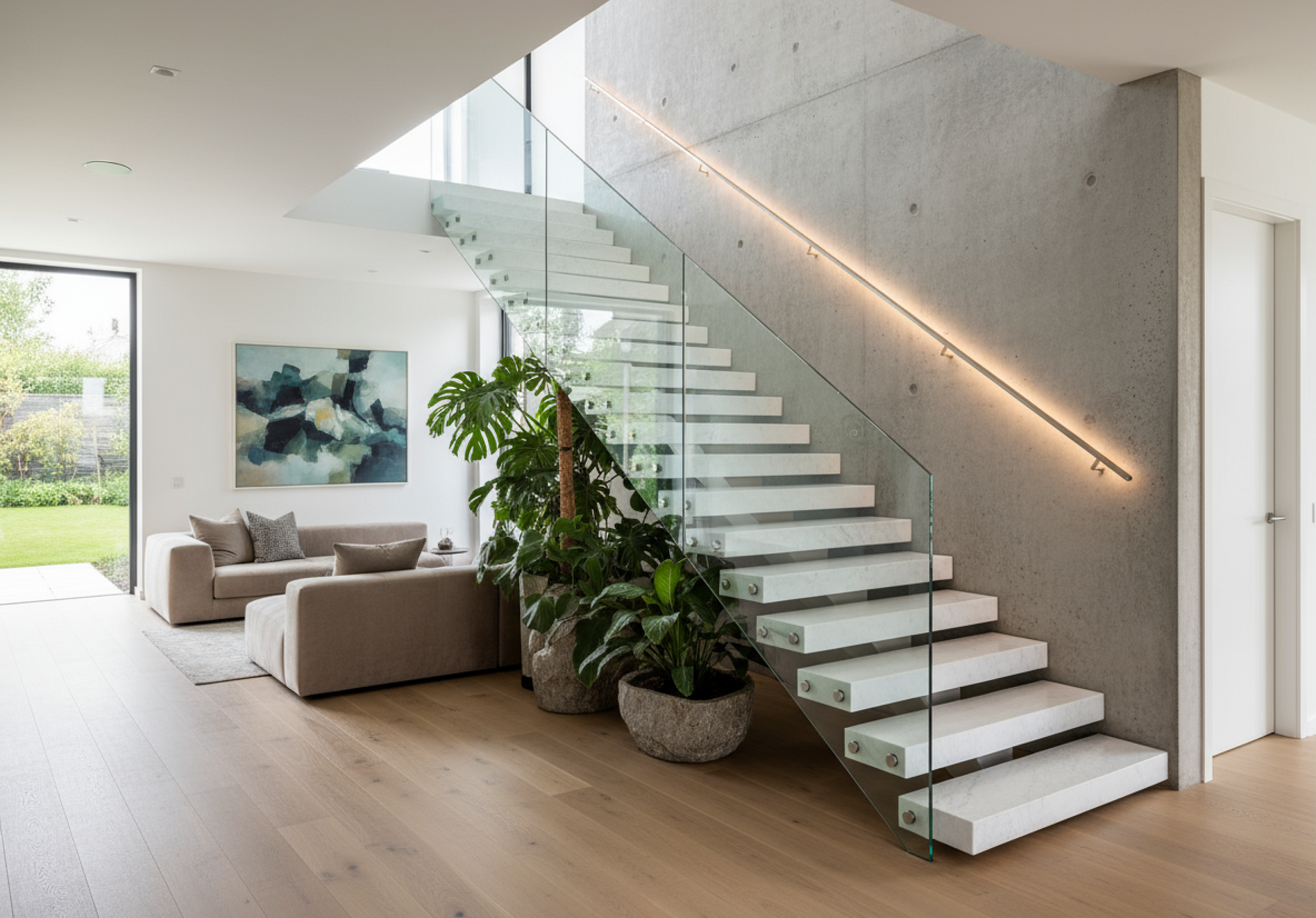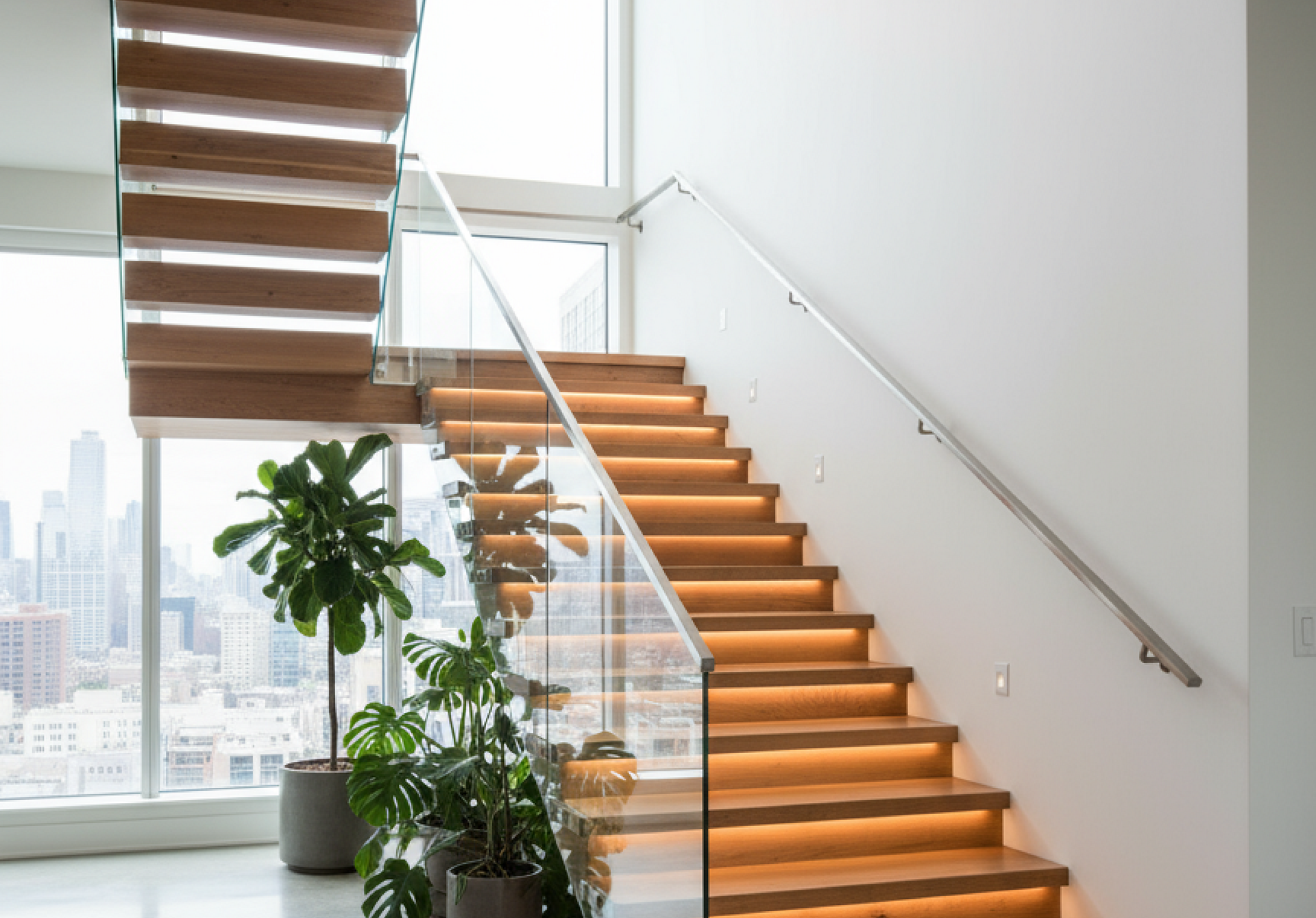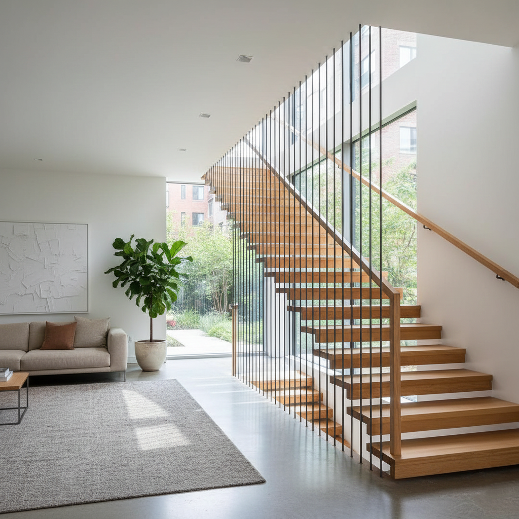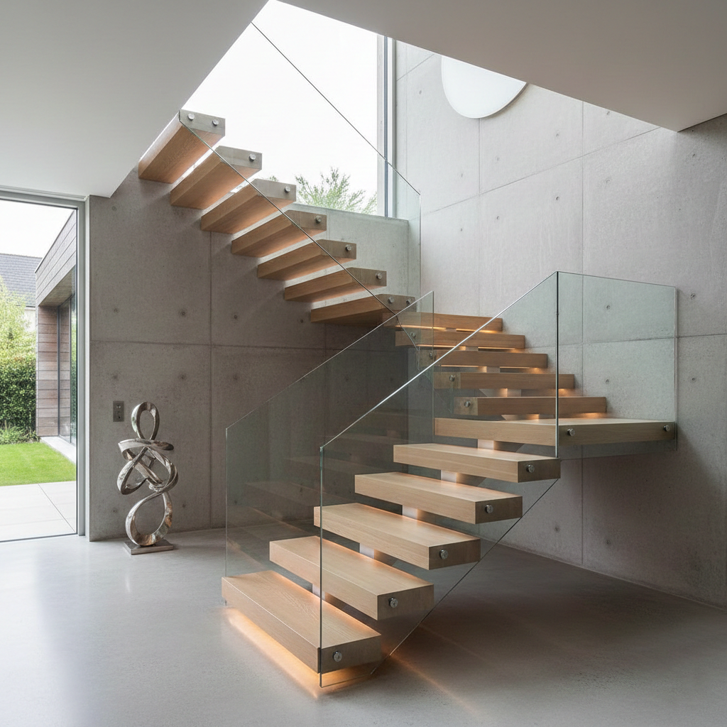 Эффект «парящих» в воздухе ступеней из массива дуба
